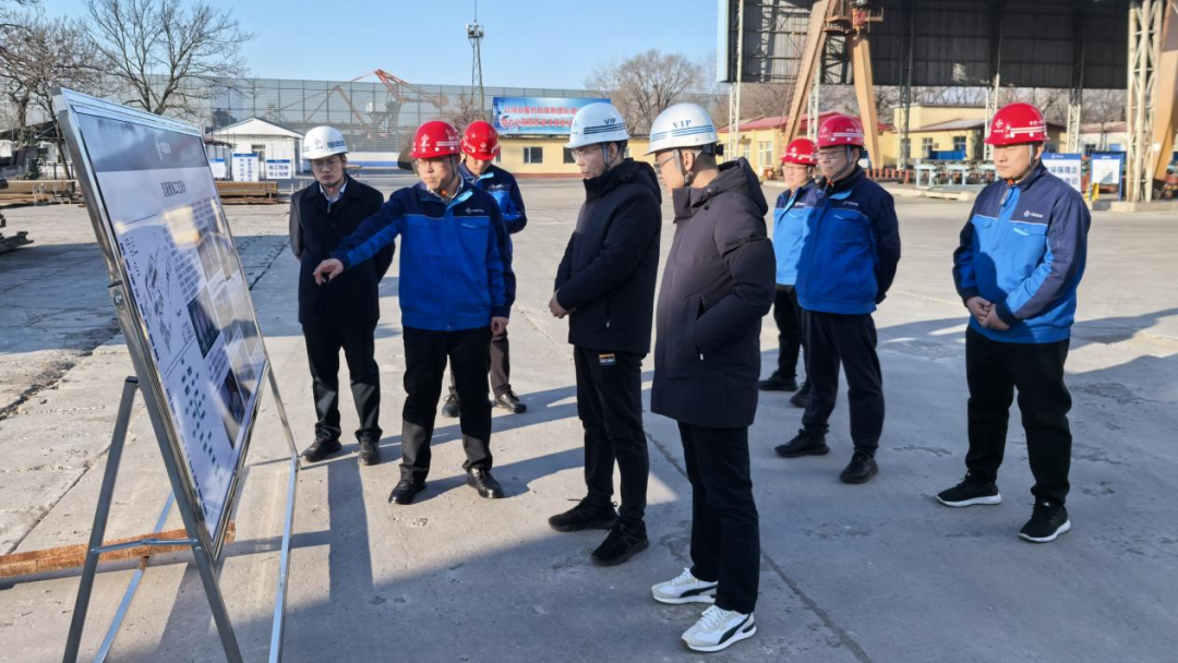 在秦皇岛预制场,武志华详细了解了预制场目前沉箱的施工进展,考察了船修基地迁建项目准备情况,围绕安全生产、开拓经营等内容进行深入交流。